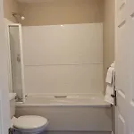 I badrummet finns även en separat toalett, en dusch och en tvättmaskin. Hårtorkar, badlakan och handdukar erbjuds också.